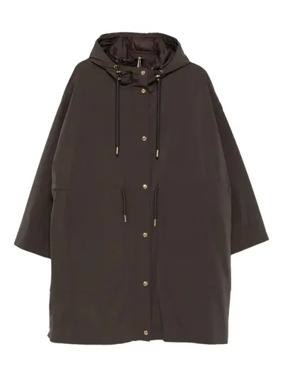 brown drawstring hood press-stud fastening long sleeves welt pockets