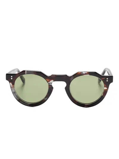 brown acetate round frame green lenses rivet detail tortoiseshell pattern These glasses come with a protective case.