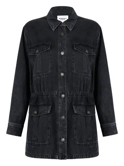 black cotton flap patch-pockets button fastening elasticated waist collared neck