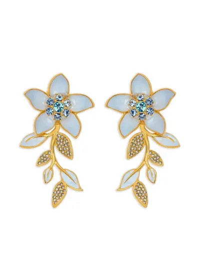 gold-tone enamel flower crystal embellishments leaf motif post fastening These earrings come as a pair.