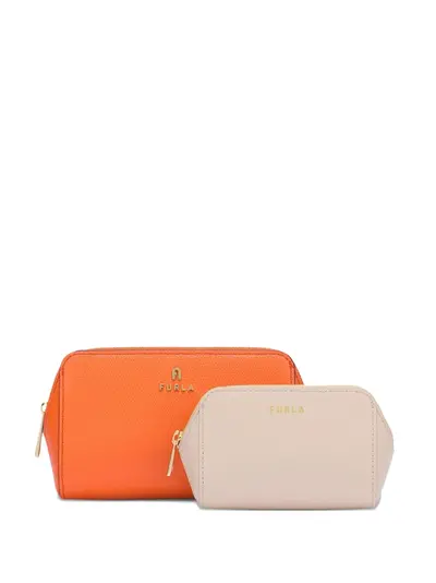 orange and pale pink grained leather gold-tone zip fastening internal slip pocket logo plaque
