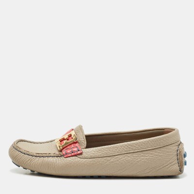 These grey leather loafers by Fendi feature the house’s FF motif across the vamp, offering subtle branding with a structured base. Ideal for office dressing or pared down daywear.