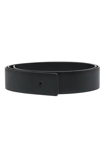 black calf leather Saffiano leather pre-drilled holes press-stud fastening adjustable fit