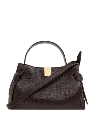 brown pebbled leather top handle detachable shoulder strap magnetic fastening knotted detailing This piece comes complete with a protective dust bag.