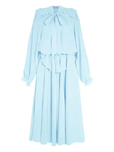 light blue ruffled shoulders pussy-bow neck long sleeves silk