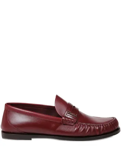 burgundy leather upper mocassin stitching gold-tone Cassandre logo plaque slip-on style flat sole