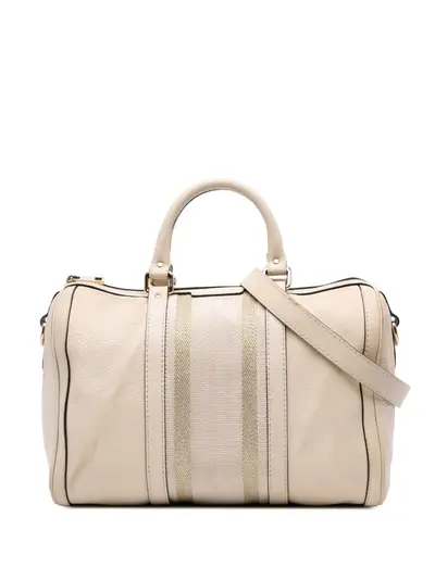 leather body with canvas web detail rolled leather handles detachable flat leather strap top zip closure interior zip and slip pockets brown Serial Number: 247205 525040 Inclusions: shoulder strap. Condition: GOOD. This previously owned and used item is in good condition with minimal signs of use. This may include fading of material or plating and scratches. Please refer to the photos on this product page for a detailed view of the item, including any damages declared.