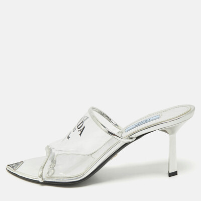 Prada Transparent PVC Logo Print Slide Sandals Size 39 1186495 (lpn30690499)