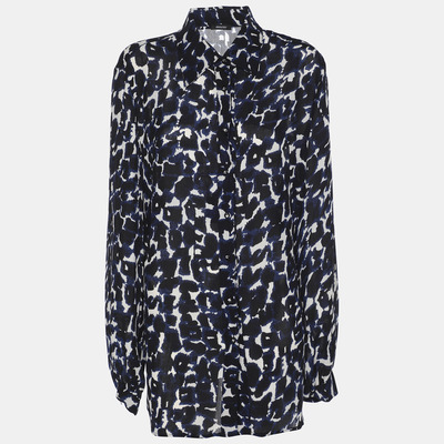 Elena Miro Blue Chiffon Georgette Print Long Sleeve Shirt L 1185169 (голубой, lpn30690908)
