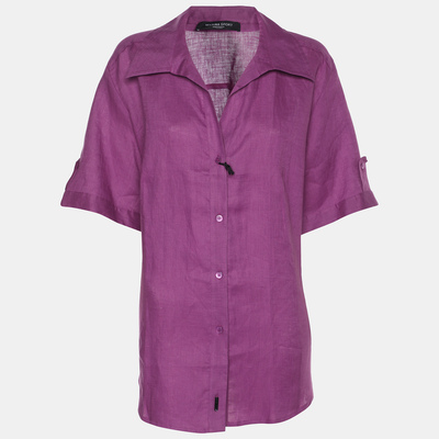 Marina Sport by Marina Rinaldi Purple Linen Short Sleeve Shirt L 1185187 (фиолетовый, lpn30691012)