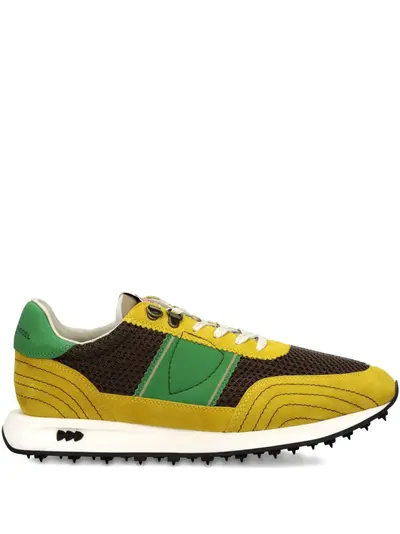 brown, yellow and green mesh suede panels lace-up fastening studded sole