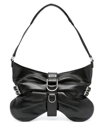 black calf leather smooth grain butterfly style pleat detailing silver-tone hardware adjustable top handle front buckle fastening top zip fastening main compartment internal logo patch internal slip pocket