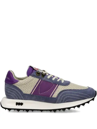 beige and violet suede panelling mesh panelling tonal stitching rubber sole