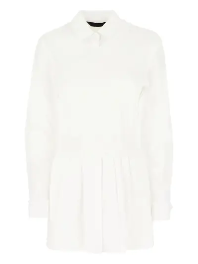 white asymmetric neckline pleated hem long sleeves button fastening fitted waist
