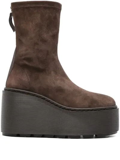 brown suede upper platform sole zip fastening sock-like fit