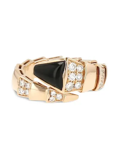 rose gold tone 18K rose gold round-cut pavé-set diamonds onyx cabochon polished finish Normal everyday use and external agents may reduce the lustre of gemstones and gold surfaces. To maintain, use specific, non-abrasive products specially meant for cleaning jewellery.