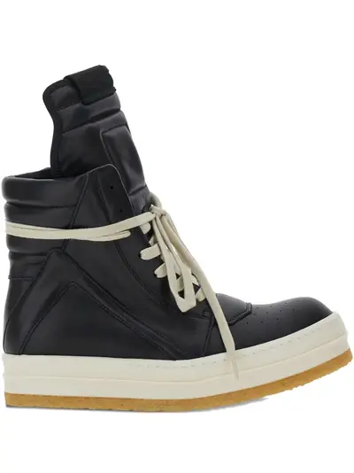 black leather padded details lace-up fastening zip fastening rubber sole