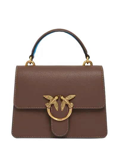 brown calfskin leather Love Birds clasp top handle detachable chain strap flap closure