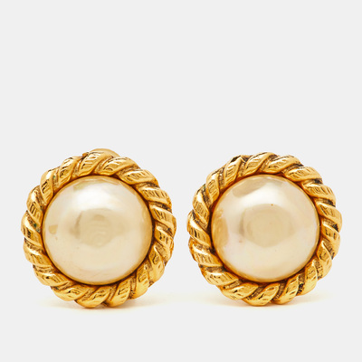 Chanel Faux Pearl Gold Tone Round Clip-on Earrings 1180478 (lpn30700453)