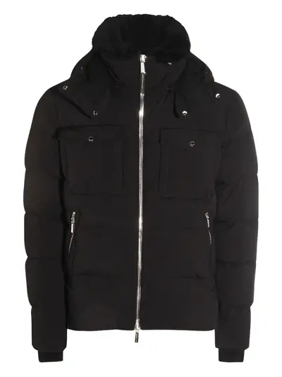 black quilted design hooded neckline flap pockets zip fastening ribbed cuffs