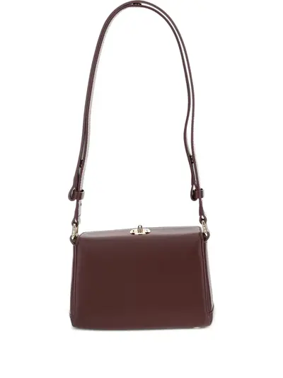 red leather adjustable shoulder strap flap top twist-lock fastening gold-tone hardware