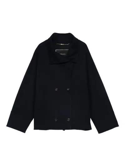 navy blue double-breasted fastening long sleeves side pockets