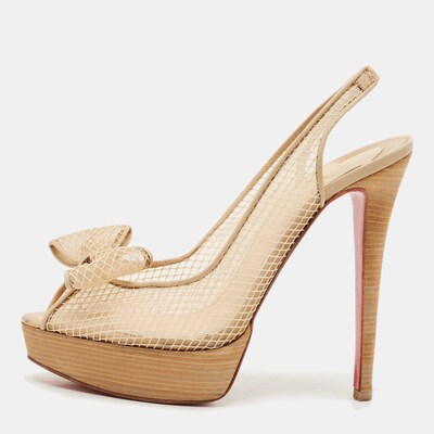 Christian Louboutin Beige Mesh and Leather Bow Slingback Pumps Size 39 1189931 (бежевый, lpn30717265)