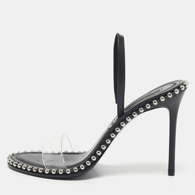 Modern edge meets architectural design in these Alexander Wang Nova sandals. Crafted from black leather and PVC, the pair is punctuated with studs and features a sleek slingback style. Perfect for after dark dressing with an avant garde finish.