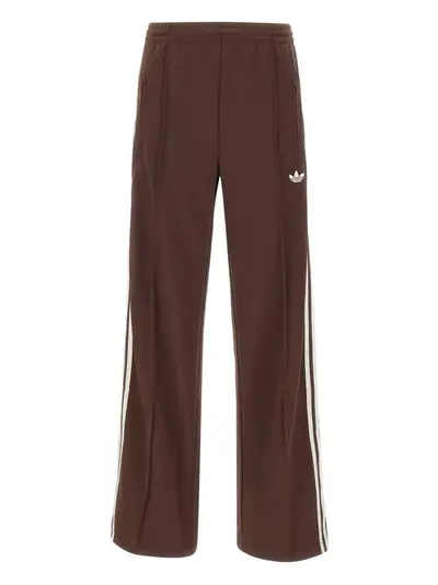 brown elasticated waist zip pockets logo detail central rib side stripes