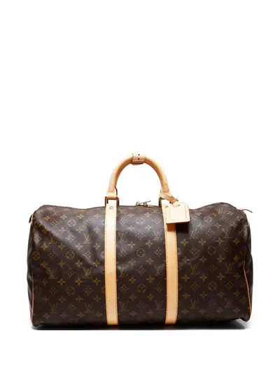 circa 1997 coffee brown signature Monogram canvas coated finish Vachetta leather trim detachable tag two rolled top handles two-way zip fastening main compartment full lining Condition: GOOD. This previously owned and used item is in good condition with minimal signs of use. This may include fading of material or plating and scratches.