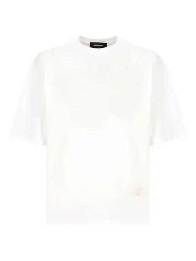 white cotton short sleeves crew neck subtle logo print hem detail