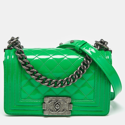 Chanel Green Quilted Patent Leather Small Boy Flap Bag 1187839 (зелёный, lpn30725512)