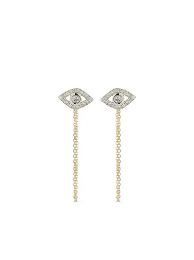 silver-tone 14kt white gold evil eye motif pavé-set round-cut diamond bezel-set round-cut diamond chain drop post-back fastening Normal everyday use and external agents may reduce the lustre of gemstones and gold surfaces. To maintain, use specific, non-abrasive products specially meant for cleaning jewellery. These earrings come as a pair.