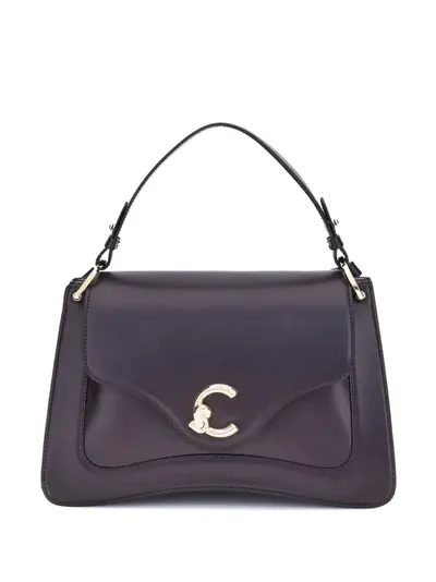 dark purple single top handle flap closure C-logo detail structured shape detachable shoulder strap