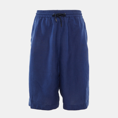 These blue Bermuda shorts are tailored from hemp in a drawstring waist design and four pockets—Armani’s nod to warm weather comfort.