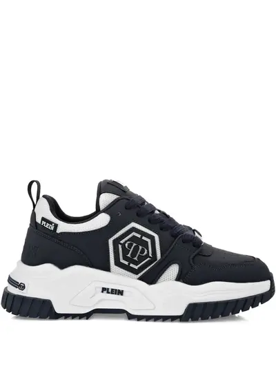 dark blue hexagon logo chunky sole lace-up fastening mesh panel