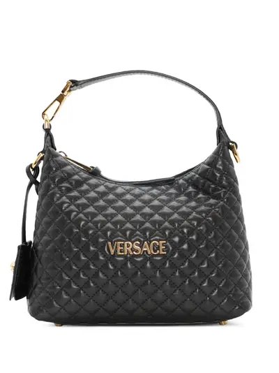 black quilted leather gold-tone logo top handle zip fastening small size