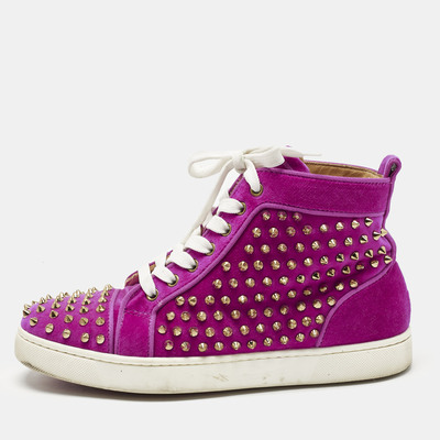 Christian Louboutin Pink Velvet Spike Louis High Top Sneakers Size 40.5 1190665 (розовый, lpn30733696)