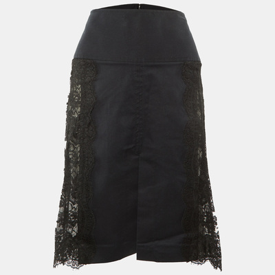 Dolce&Gabbana Black Cotton & Lace Paneled Knee Length Skirt L 1189444 - 1