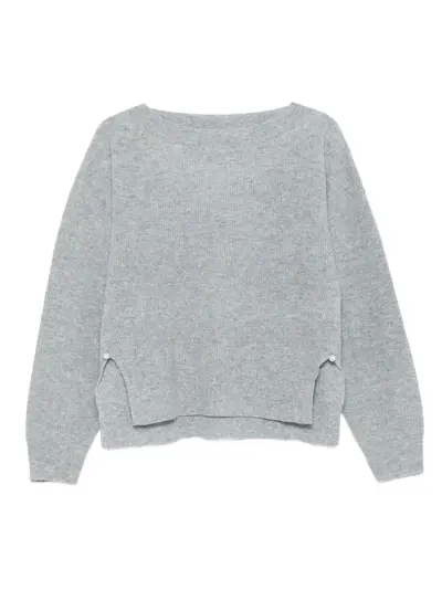 grey ribbed texture pearl embellishment boat neck side slits long sleeves