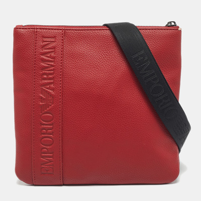 Emporio Armani Red/Black Leather Logo Embossed Flat Messenger Bag 1190998 (красный, lpn30738956)