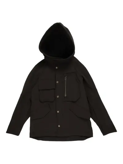 black front press-stud fastening classic hood front zip-fastening pocket three side flap pockets