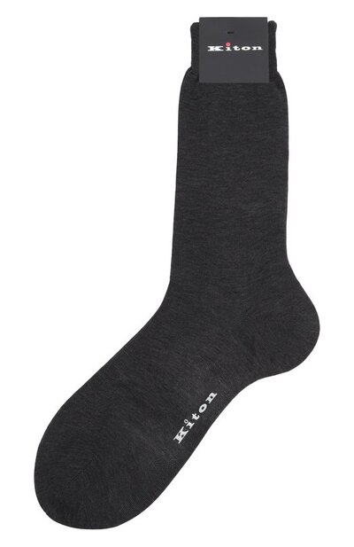 Носки с высоким паголенком и широкой резинкой выполнены из меланжевого хлопкового трикотажа. На стопе – контрастный логотип марки.
