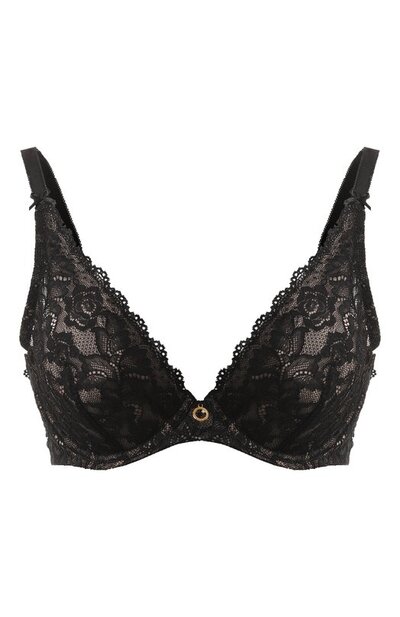 Бюстгальтер из коллекции Rosessence выполнили из переработанного нейлонового кружева стрейч. Регулируемые бретели изделия украсили атласными бантами в тон, а перемычку спереди дополнили подвеской с кристаллом Swarovski. Модель с треугольными чашечками на косточках застегивается двумя крючками на поясе сзади.