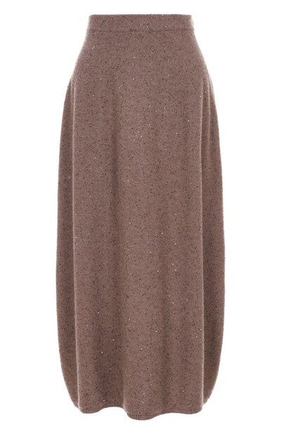 Эластичная юбка-баллон с широким поясом выполнена из шерстяного трикотажа с добавлением кашемира. Модель украшена россыпью миниатюрных пайеток со всех сторон.