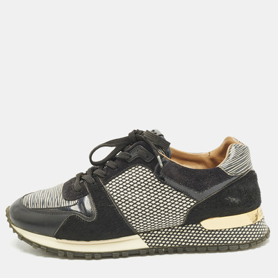 Made to provide comfort, these Run Away sneakers by Louis Vuitton are trendy and stylish. Theyve been crafted from calf hair along with Monogram canvas and designed with lace up vamps, leather insoles, and a brand label on the sides. Wear them with your casual outfits for a sporty look and the rubber soles of this pair will lend you optimal grip while walking.