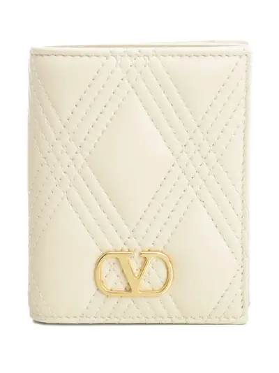cream white diamond quilting leather gold-tone VLogo Signature zip-fastening coin pocket press-stud closure
