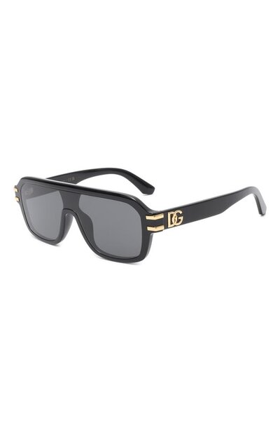 Очки DG Griffe с оправой из ацетата декорировали контрастными полосами сбоку и монограммой DG на дужках. Аксессуар дополнили монолинзой, которая полностью блокирует ультрафиолет.