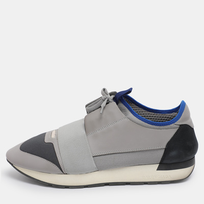 Balenciaga Grey Knit Fabric and Leather Race Runner Low Top Sneakers Size 42 1193039 (lpn30752470)