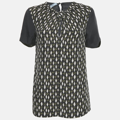 Prada’s navy silk blouse is printed with abstract florals and cut in a relaxed silhouette. Lightweight and polished, it blends Italian finesse with effortless styling—ideal for both boardroom and brunch.